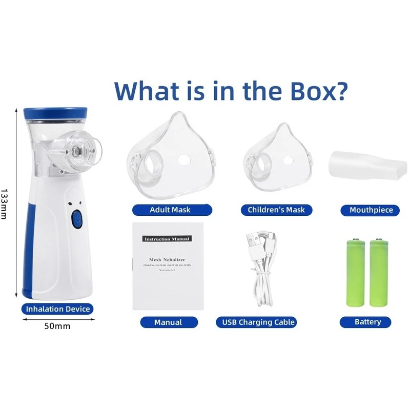 ** کلید پاورر با ۳حالت عملکرد پیوسته با شدت پاشش قوی تا ضعیف می باشد، همچنین با نگهداشتن دکمه، با ریتم تنفسی ۵ثانیه پاشش و ۵ثانیه قطع را نیز دار می باشد، * روش درمانی: تبخیر دارو که مناسب آسم، سرفه، سینوزیت، تب، گرفتگی صدا می باشد، * منبع تغذیه: ۲عدد باتری شارژی AA و یا قلمی ساده AA (همراه دستگاه) + استفاده از کابل USB-C (همراه دستگاه) با هرگونه شارژر موبایلی یا پاوربانک، * سرعت اتمیزه کردن: بیشتر یا مساوی ۰.۲ میلیلیتر در دقیقه، * ظرفیت مخزن: حداقل حدود ۰.۵ میلیلیتر و حداکثر حدود ۸ میلیلیتر، * سطح صدای نویز: کمتر از ۵۰ دسیبل،